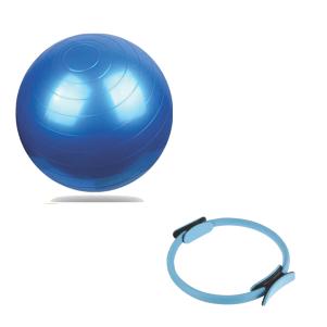 Itens como bola suíça, faixa elástica, aro mágico, entre outros, usados para intensificar ou adaptar os exercícios no solo.